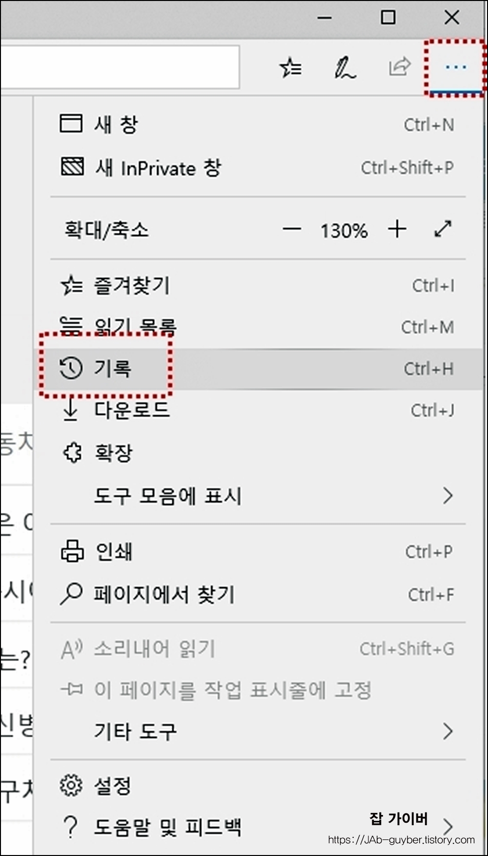 최신 인터넷익스프롤러 엣지 기준으로 우측상단에 점3개 클릭