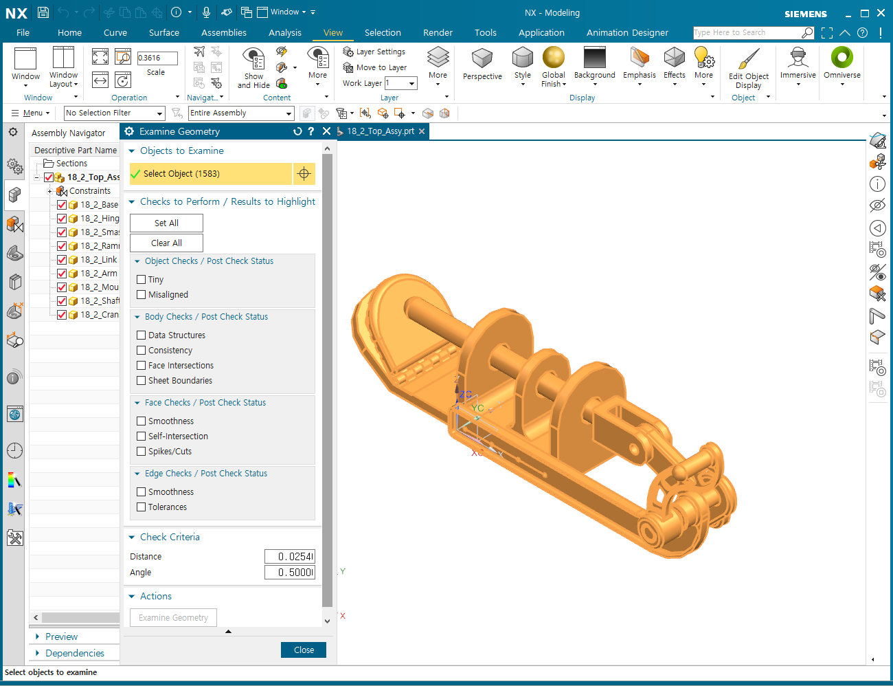 지멘스 NX Examine Geometry - Heal 기능 데이터 오류 무결성 검사