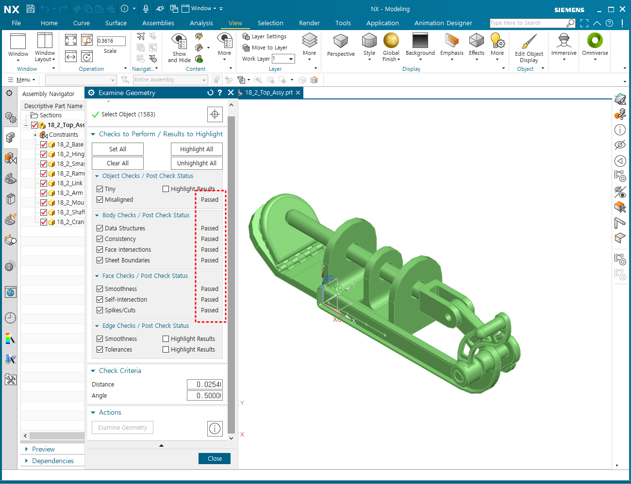 지멘스 NX Examine Geometry - Heal 기능 데이터 오류 무결성 검사