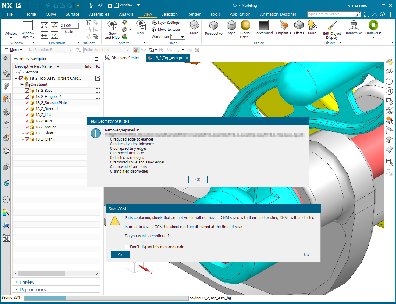 지멘스의 NX 소프트웨어에서 제공하는 'Heal Geometry' 기능은 외부에서 가져온 CAD 데이터를 정리하고 오류를 수정하여 모델의 품질을 향상시키는 도구입니다.