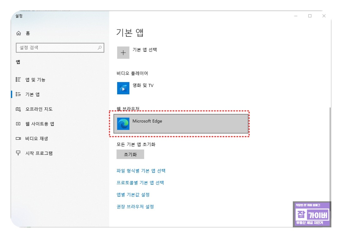 - 웹 브라우저 섹션에서 Microsoft Edge 대신 사용할 웹 브라우저 (예: Google Chrome 또는 Mozilla Firefox)를 선택하여 기본값으로 설정합니다.