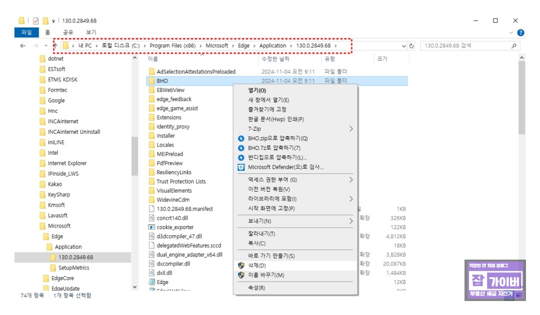 - 폴더 내의 BHO 디렉토리로 들어가 모든 파일을 삭제합니다.