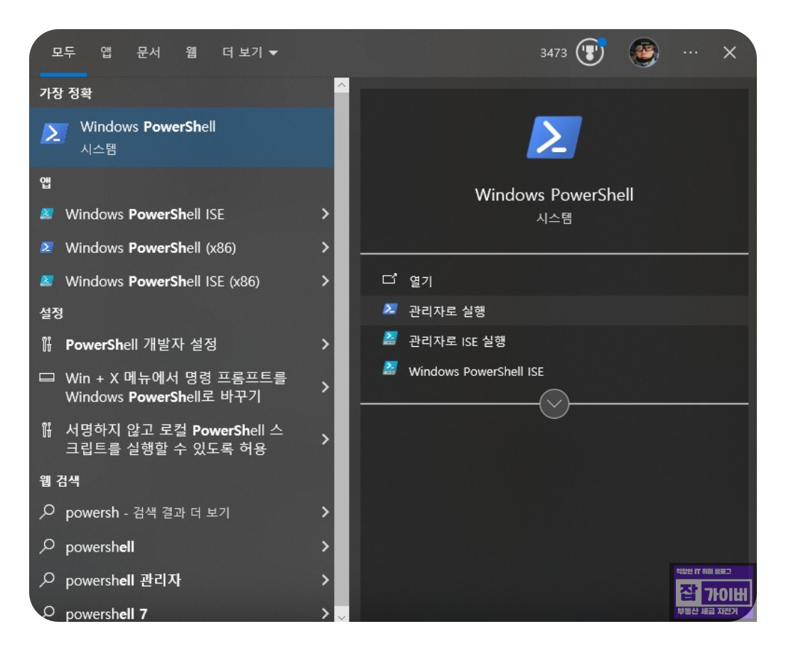 - 관리자 권한으로 PowerShell을 실행합니다.