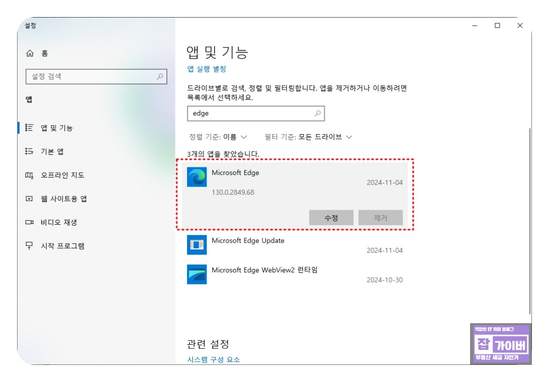 마이크로소프트 엣지 삭제 숨김파일 제거 - 윈도우11