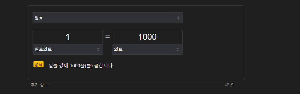 따라서, 1킬로와트(1kW = 1000W)의 전기 장치가 특정 전압에서 몇 암페어의 전류를 사용하는지 계산하려면 그 전압 값을 알고 있어야 합니다.