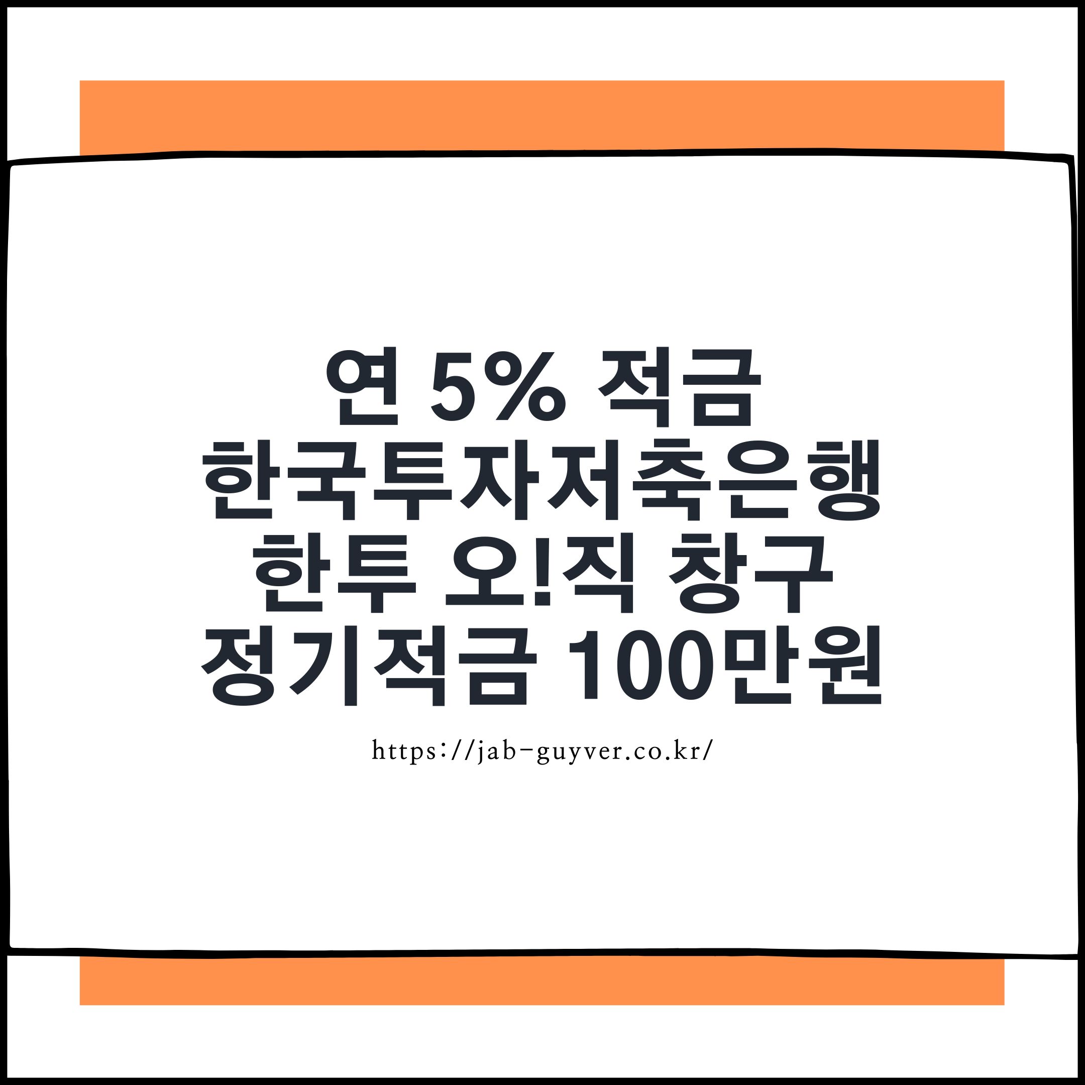 연 5% 적금 한국투자저축은행 한투 오!직 창구 정기적금 100만원 후기