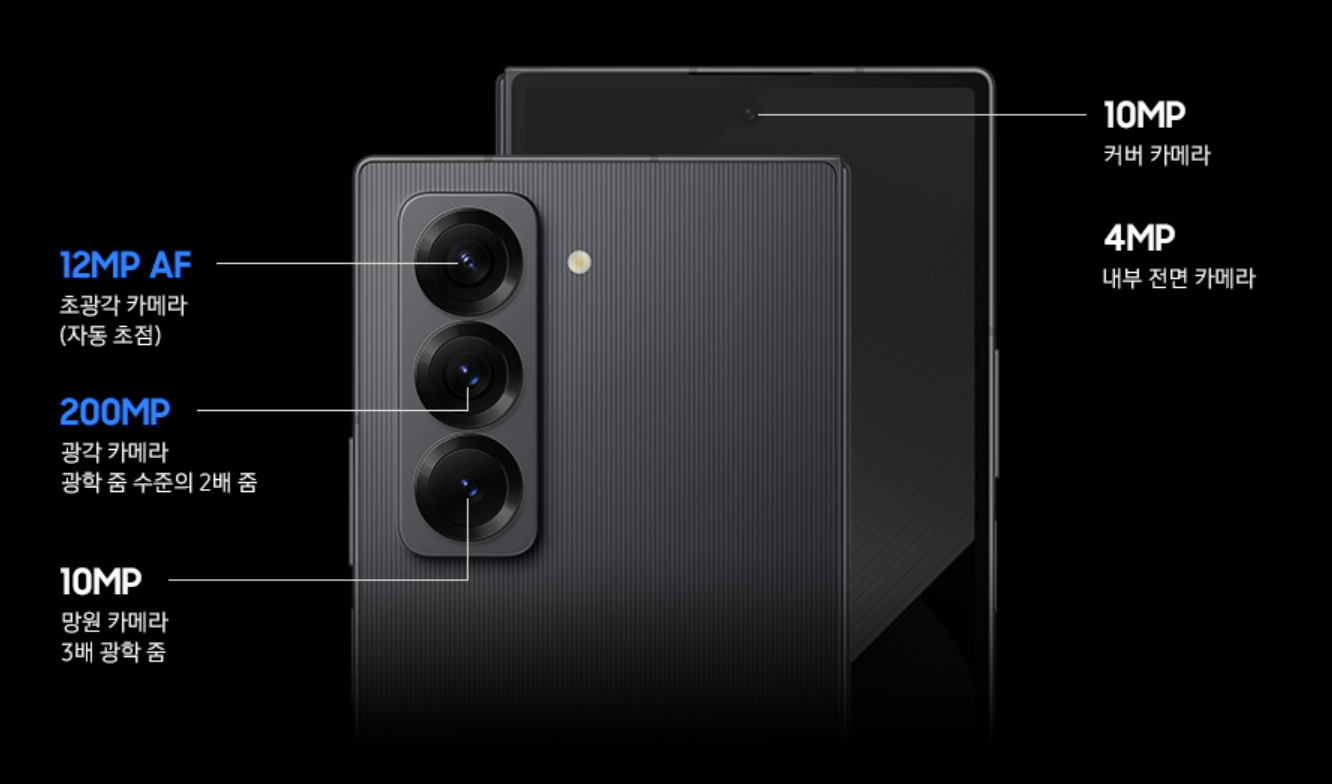 - 최고 사양의 카메라: 갤럭시 Z 폴드 SE는 갤럭시 Z 시리즈 최초로 2억 화소의 광각 카메라를 탑재해 선명하고 디테일한 이미지 품질을 자랑합니다. 이는 고화질 사진 촬영을 선호하는 사용자에게 큰 장점으로 다가옵니다.