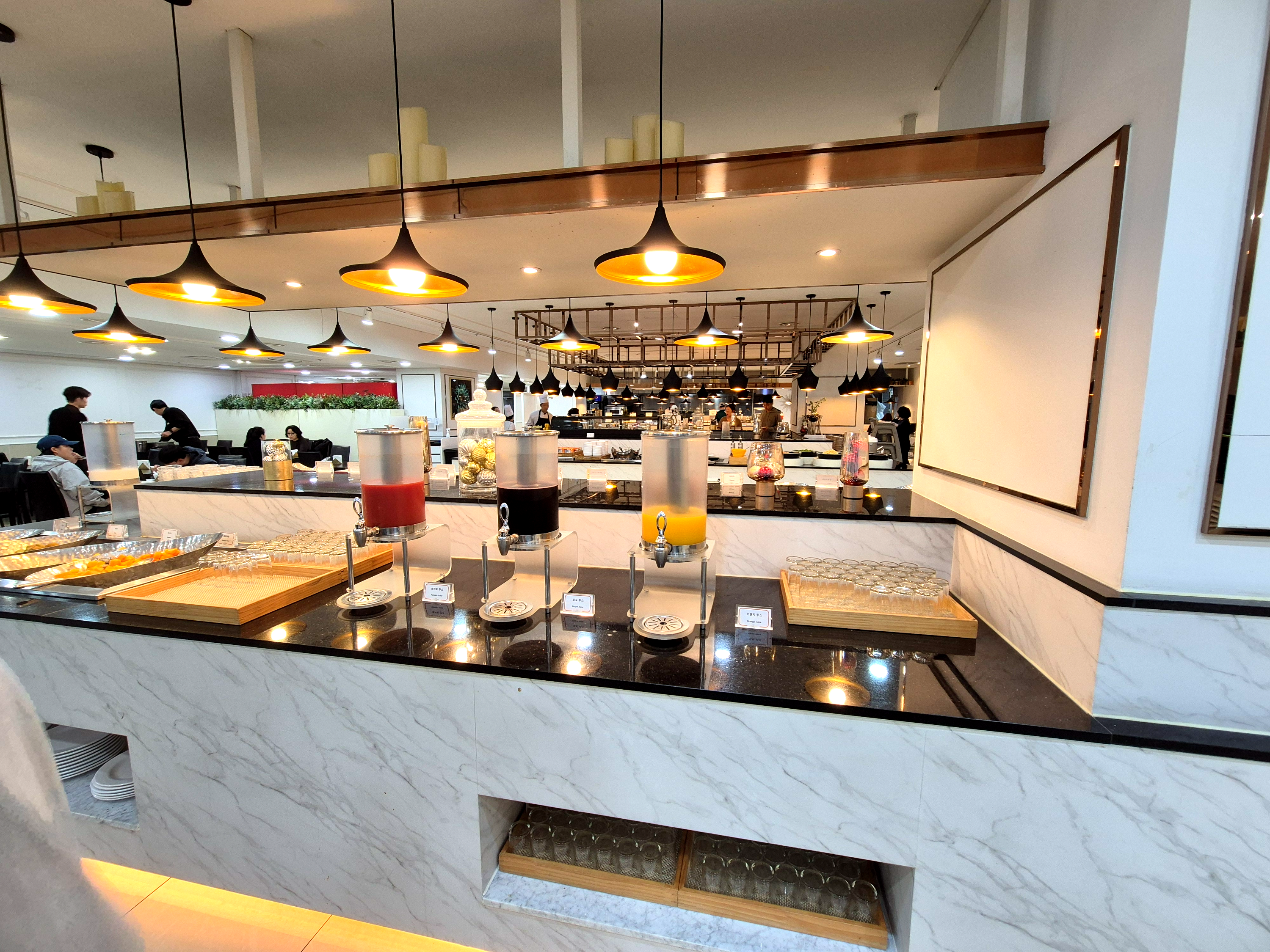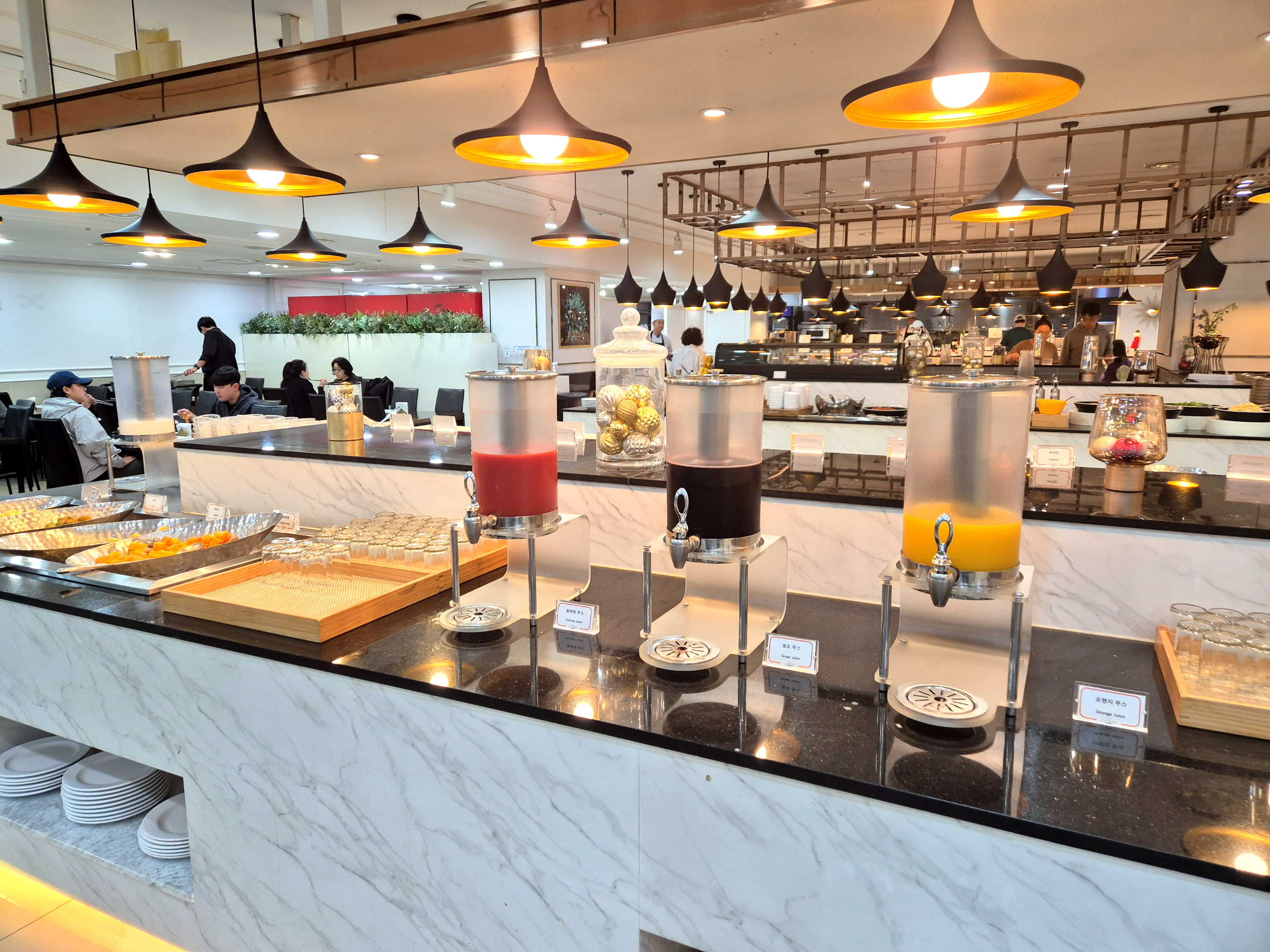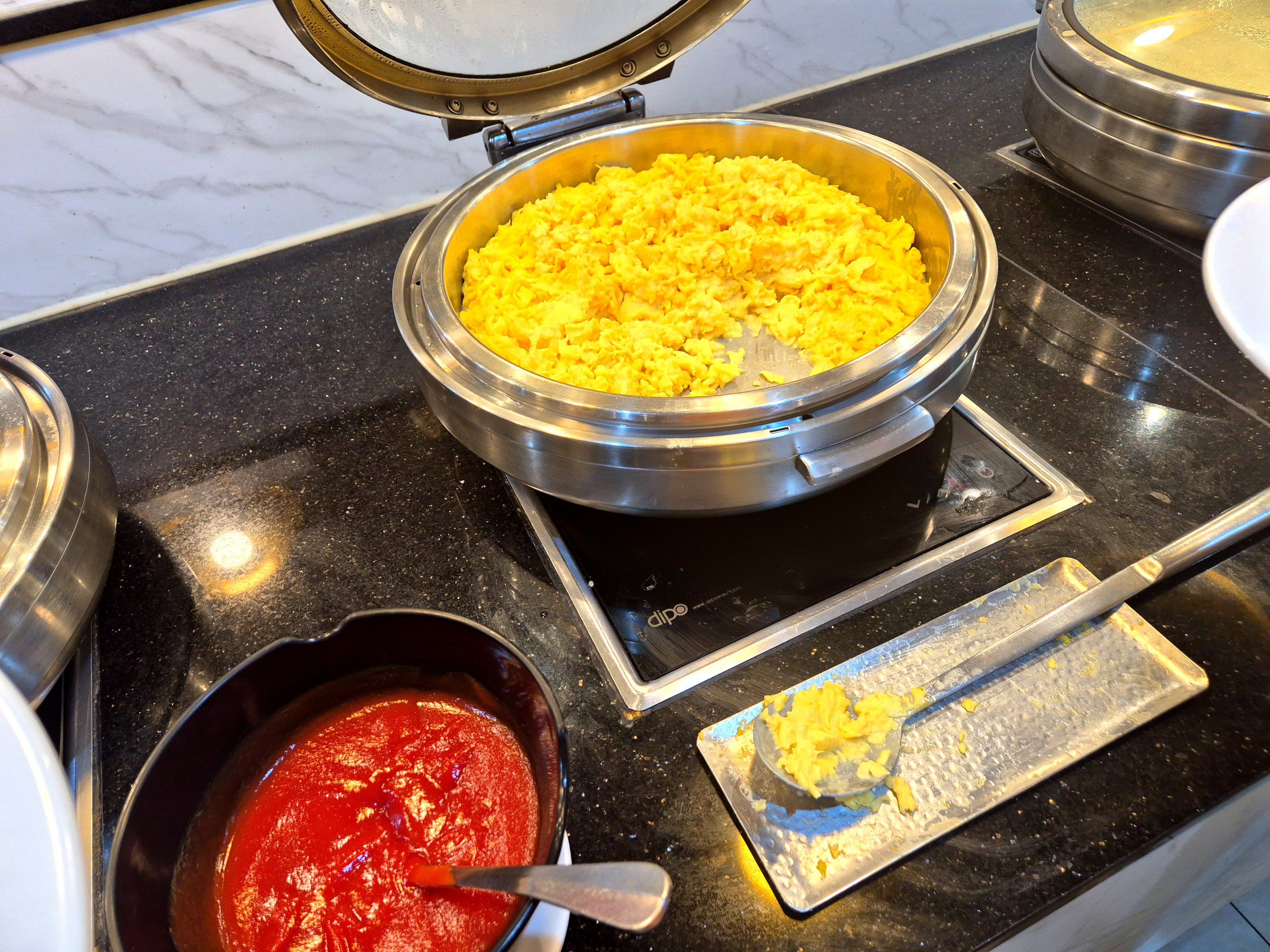 조식은 예상보다 훨씬 만족스러웠습니다. 스크램블 에그, 연어회, 감자그라탕, 불고기 등 다양한 메뉴가 준비되어 있었고, 따뜻한 커피가 함께 제공되어 아침부터 여유로운 식사를 즐길 수 있었어요. 패키지 혜택으로 이용해서 더 좋았던 것 같습니다.