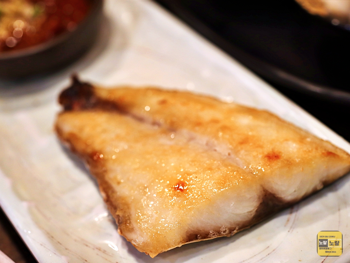 스끼다시 중에서 특히 인상적이었던 건 바삭하게 튀겨 나온 튀김과 두툼하면서 따끈하게 나온 생선구이었습니다.