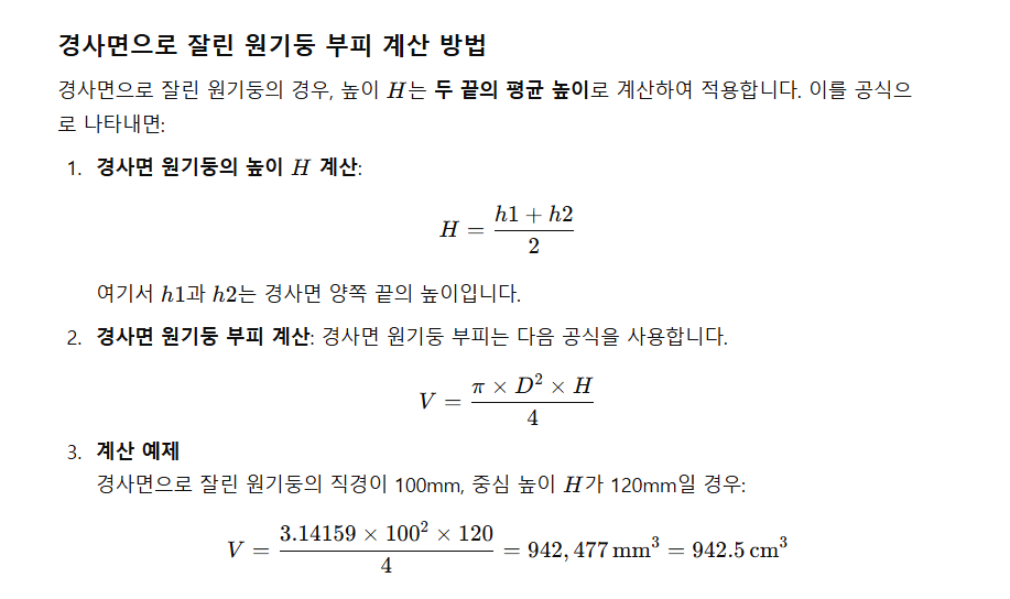 원기둥 부피 공식 경사면 절단 원통 체적 계산방법