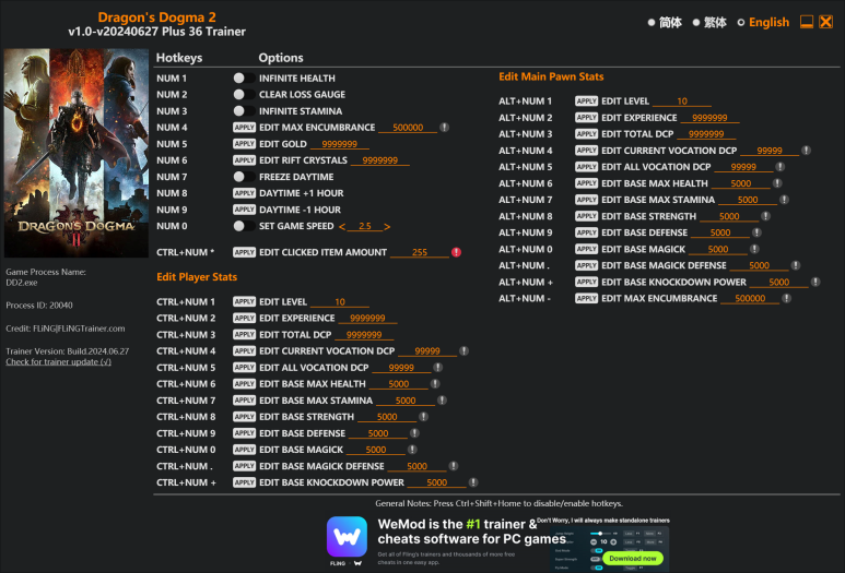 Dragons Dogma 2 v1.0-v20240627 Plus 36 Trainer 버전으로 위 파일을 다운로드 받아 실행하세요