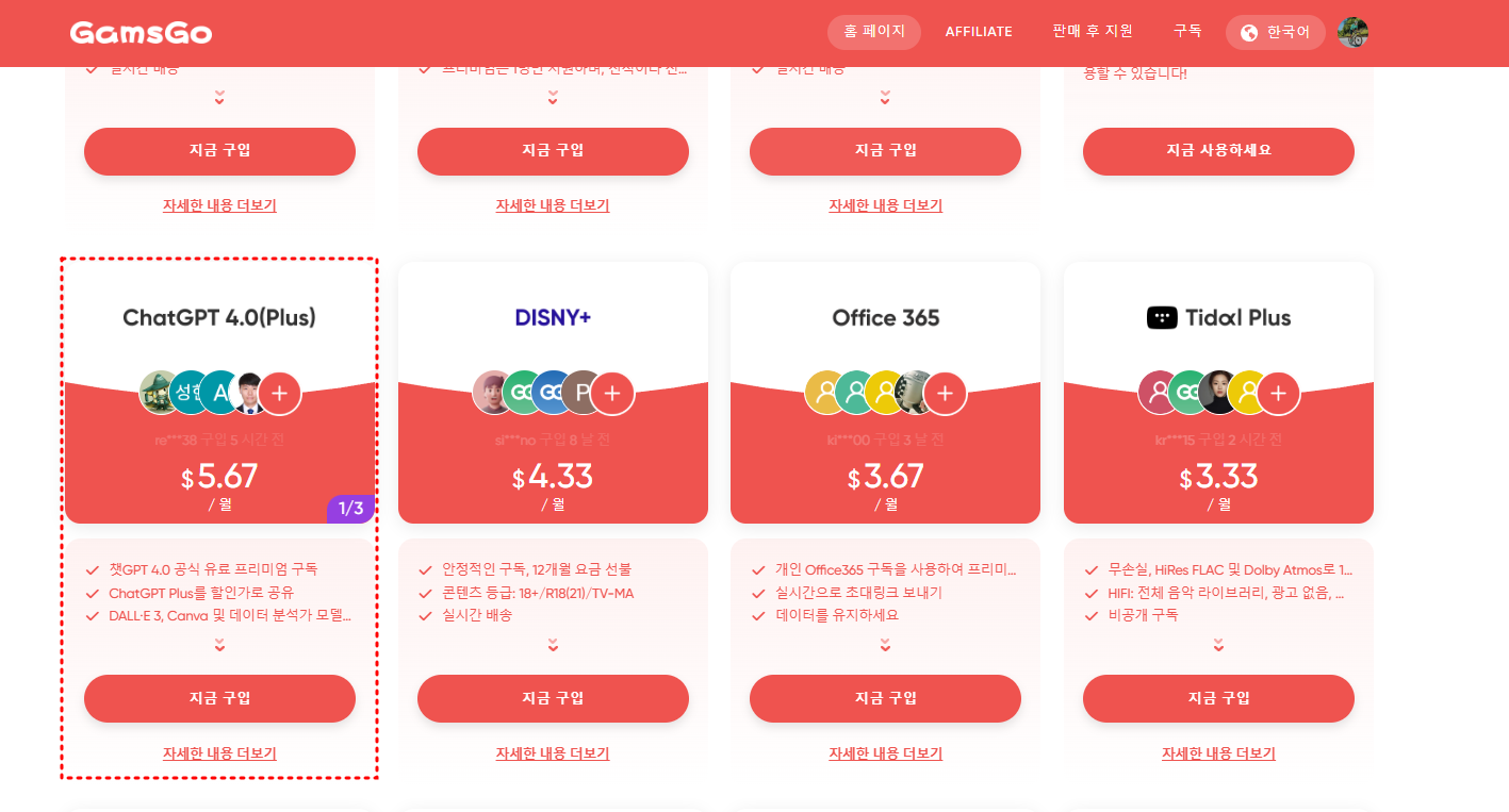 지금 겜스고(Gamsgo) 플랫폼에서 쳇GPT를 포함한 여러 프리미엄 서비스를 최대 80% 할인된 가격으로 이용할 수 있는 기회를 제공하기 때문에 일반적으로 블랙프라이데이 때 40% 할인율을 보이는 다른 서비스들과 비교해서 메리트가 있습니다.