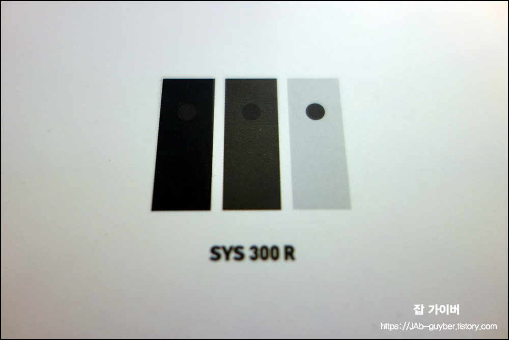 깔끔한 시스300R SYS300R의 패키지 픽토그램인데 흰색 검은색 그레이 세 가지 색상이 있네요
