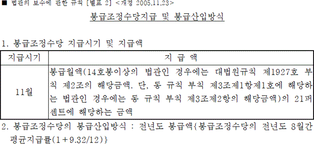| 봉급조정수당 | 장기 재직자에게 기본급의 일정 비율을 추가로 지급해 경력을 보상 |