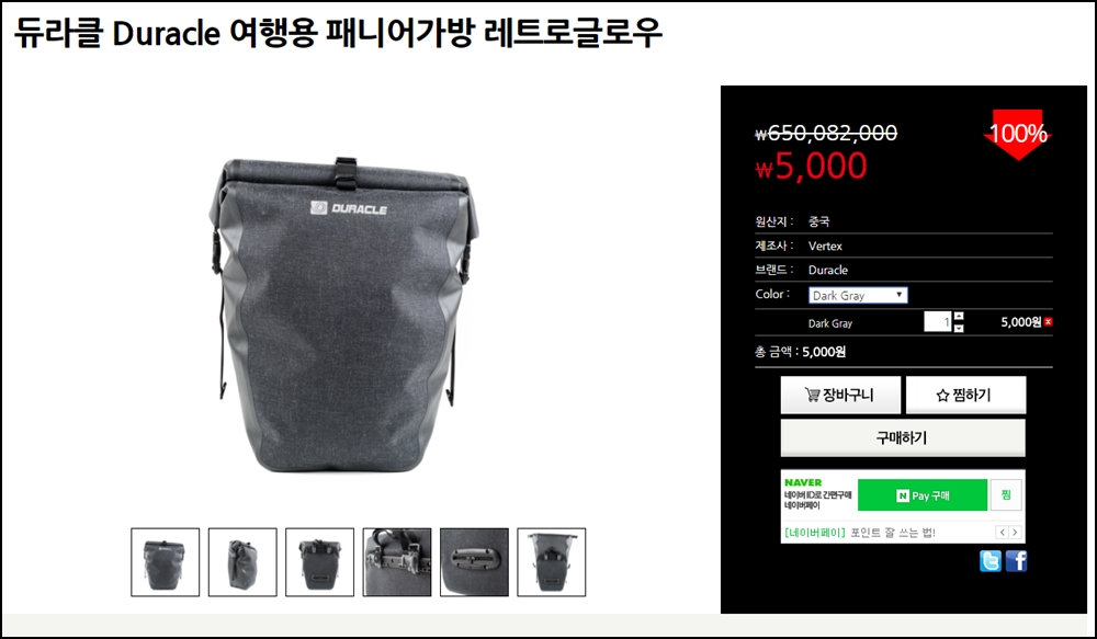 패니어 하나 살려고 하면 보통 메이커는 10~30만 원 정도 하는데 듀라클에선 저렴한 6만 원대에 판매하다가 지금은 5천 원에 판매하고 있습니다.