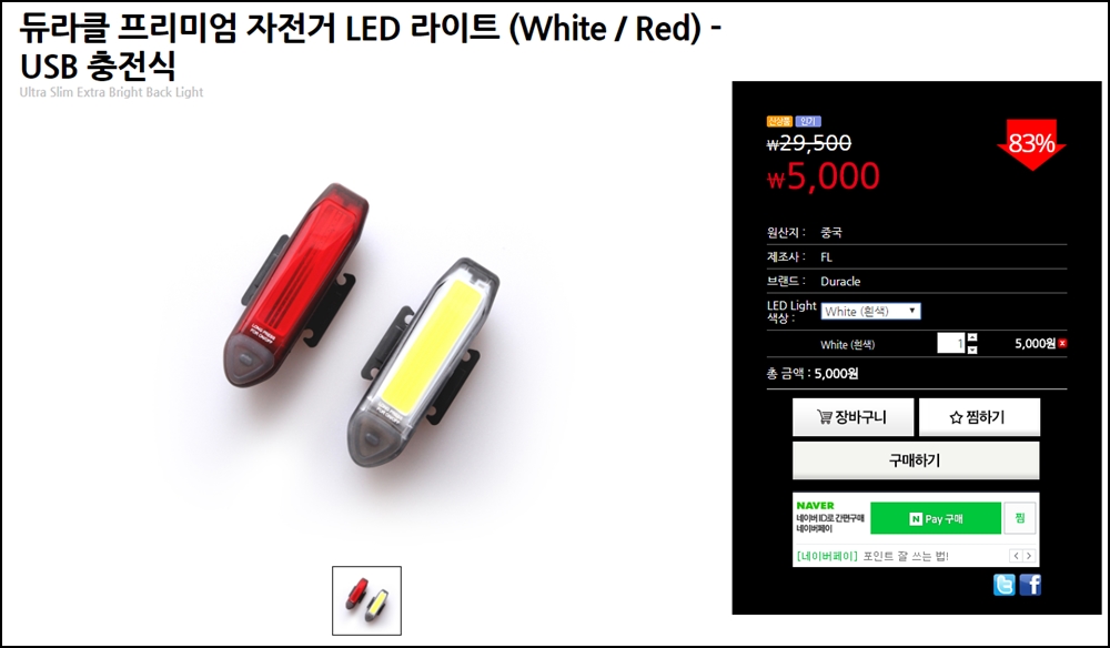 듀라클 프리미엄 자전거 led 라이트가 무려 5000원 83%의 어마어마한 할인율이죠