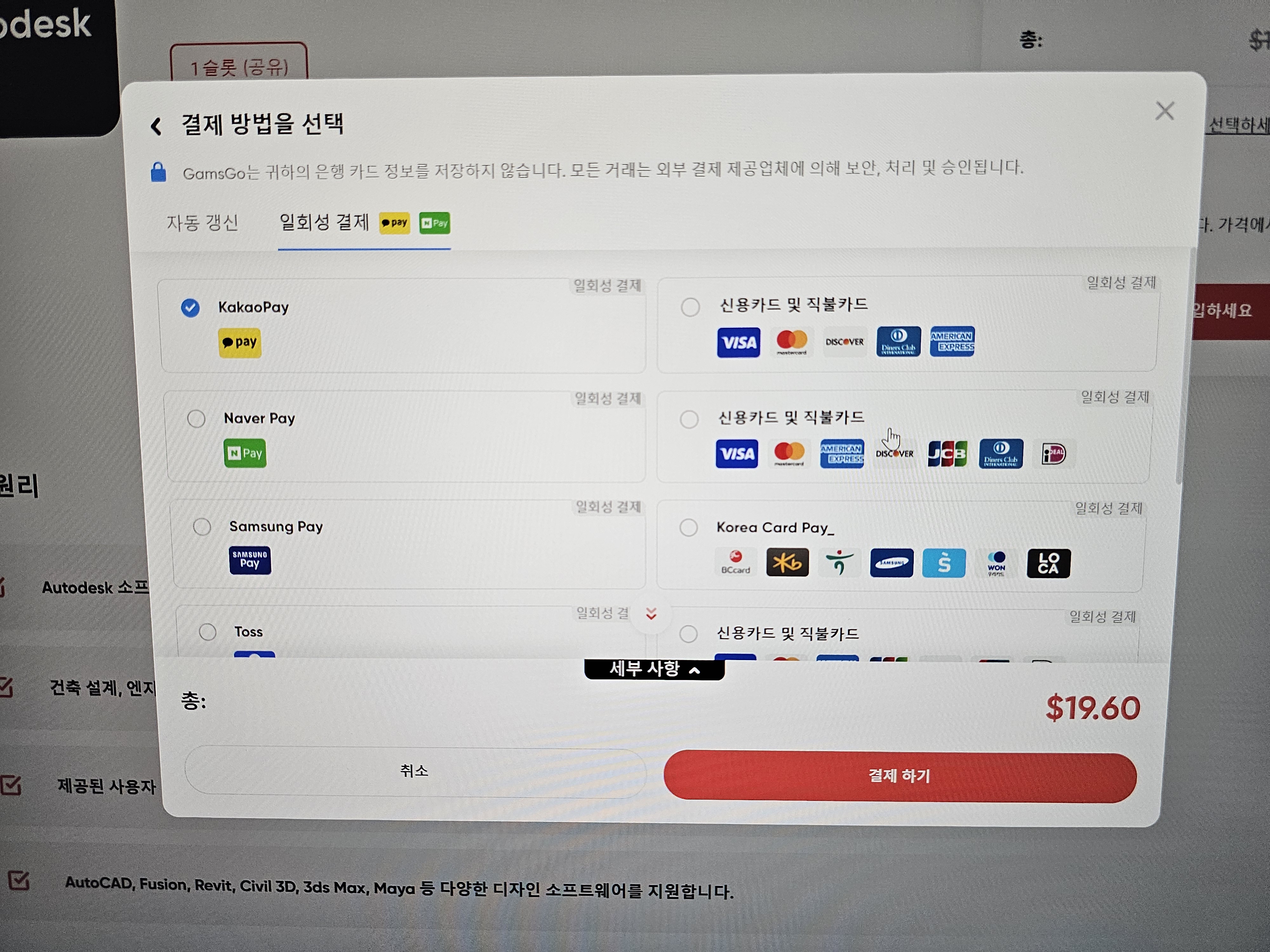 원하는 오토데스크 소프트웨어를 선택하고 GamsGo 할인가로 구입합니다.