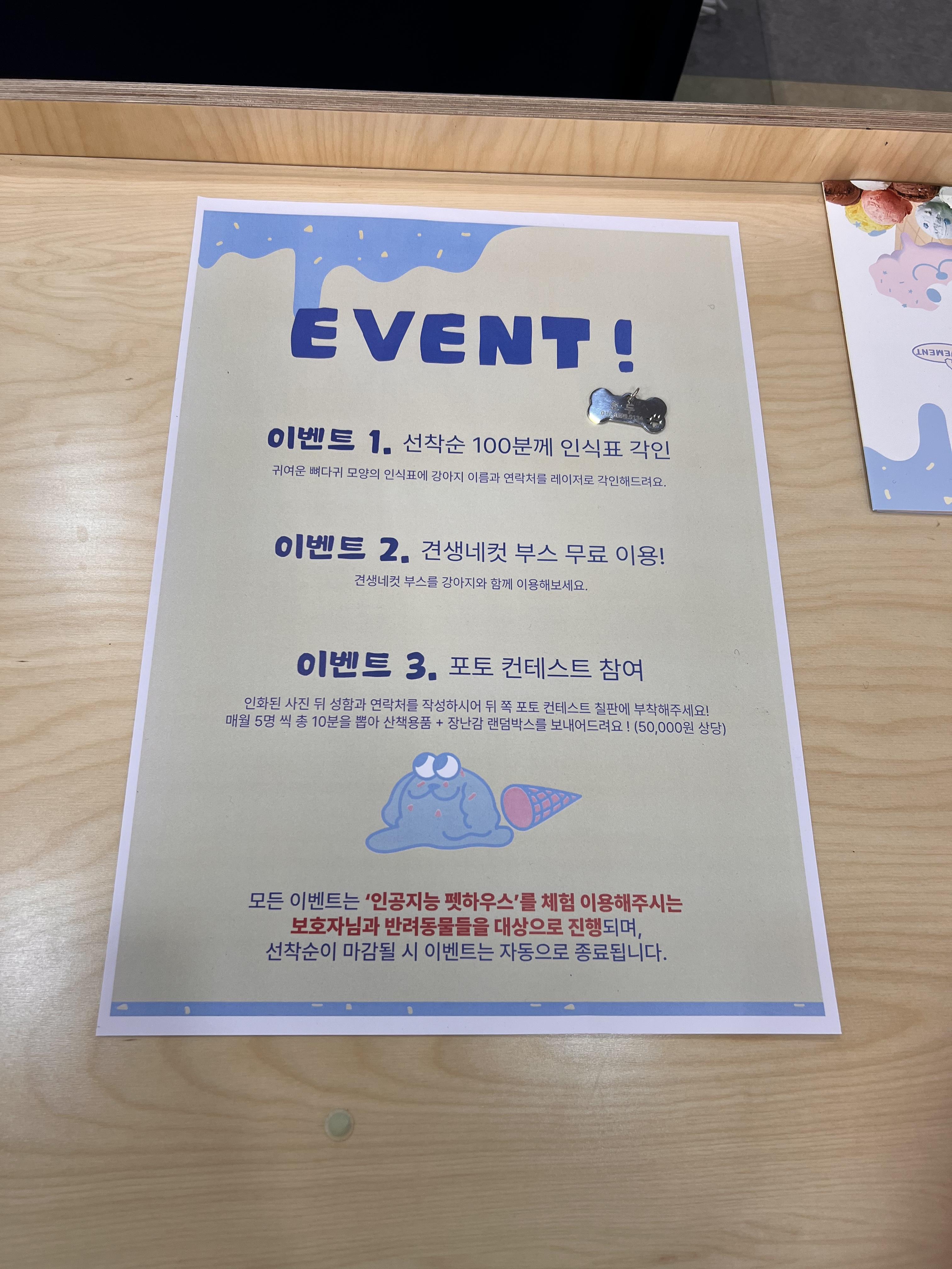 - 선착순 100마리에게 각인 인식표 제공: 반려견의 이름과 연락처가 새겨진 특별한 인식표를 선물로 드립니다.