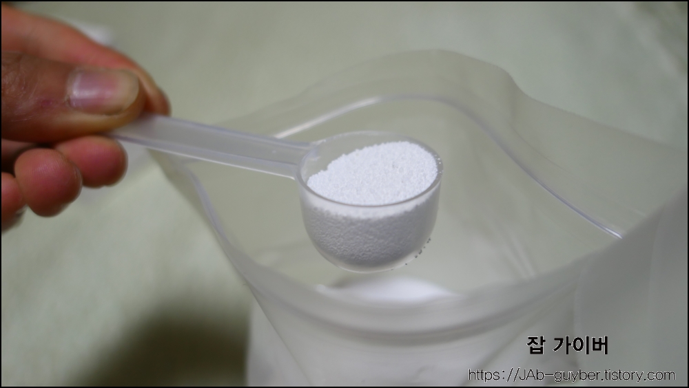 운동복크리너를 개봉하면 이렇게 지퍼백에 보관하기 쉽게 들어있습니다.