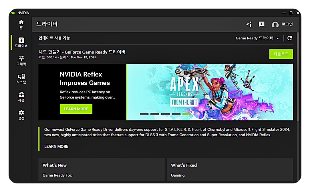 - 최신 Game Ready 및 NVIDIA Studio 드라이버 설치
