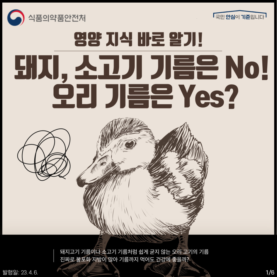 오리고기 기름 몸에 좋다는데 진짜일까? 수용성 잘못된 정보 불포화지방 높다