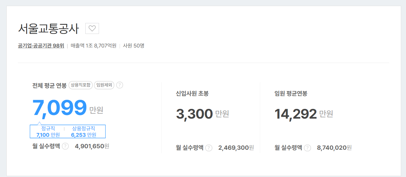서울교통공사의 평균 연봉은 약 7,204만 원으로, 이는 동종 업계 평균 대비 약 81% 더 높은 수준입니다.