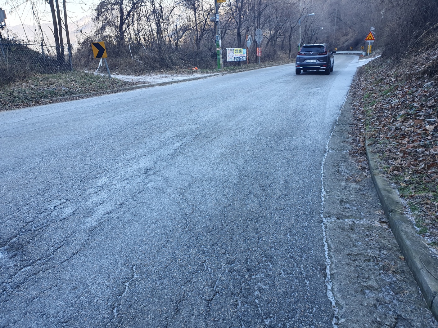 겨울 도로에는 미끄럼 방지를 위해 염화칼슘이 자주 뿌려진다.