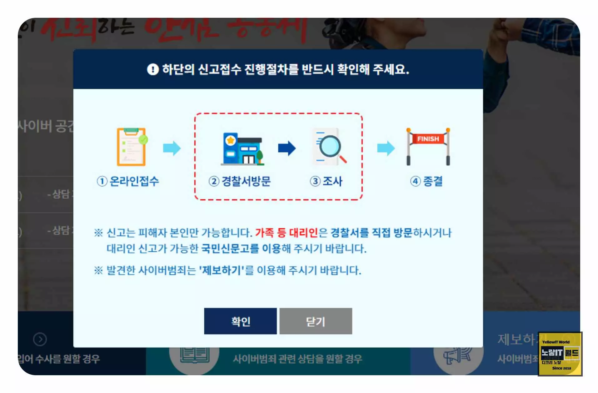 직접 경찰서를 방문하는 것이 가장 확실하지만, 경찰청 사이버범죄 신고시스템(ecrm.police.go.kr) 또는 사이버범죄신고 앱(사이버캅)을 통해 비대면으로도 신고가 가능합니다.