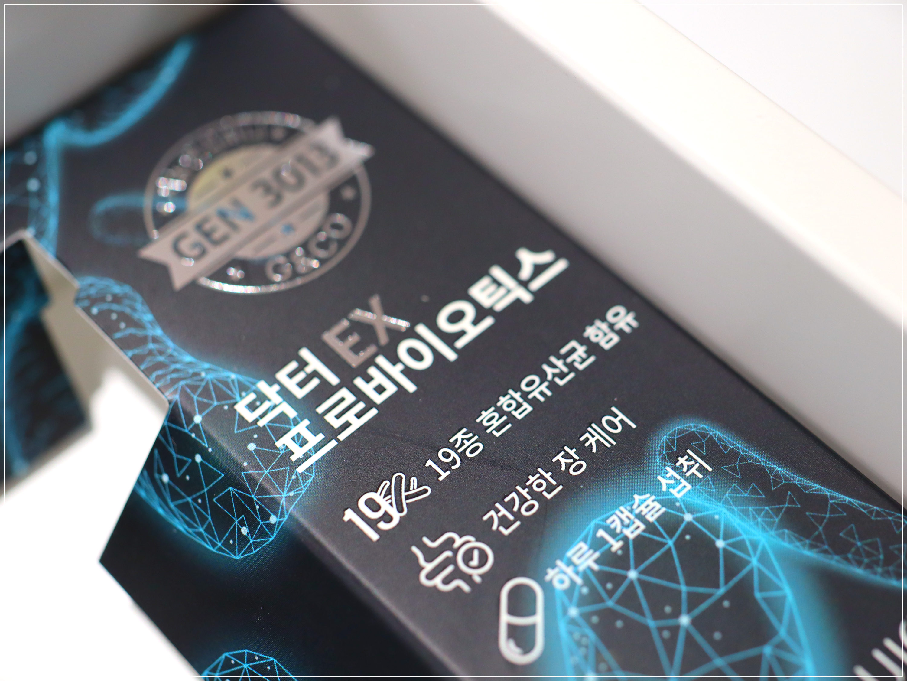지놈앤컴퍼니 닥터EX 프로바이오틱스는 특허받은 유산균 GEN3013을 포함해 식약처에서 기능성을 인정받은 19종 유산균이 함유된 제품입니다.