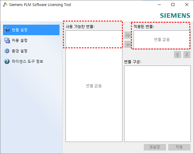 만약 nx 번들이 제대로 올라오지 않는다면 환경설정에서 라이센스 서버가 번들상태가 성공인지 확인합니다.