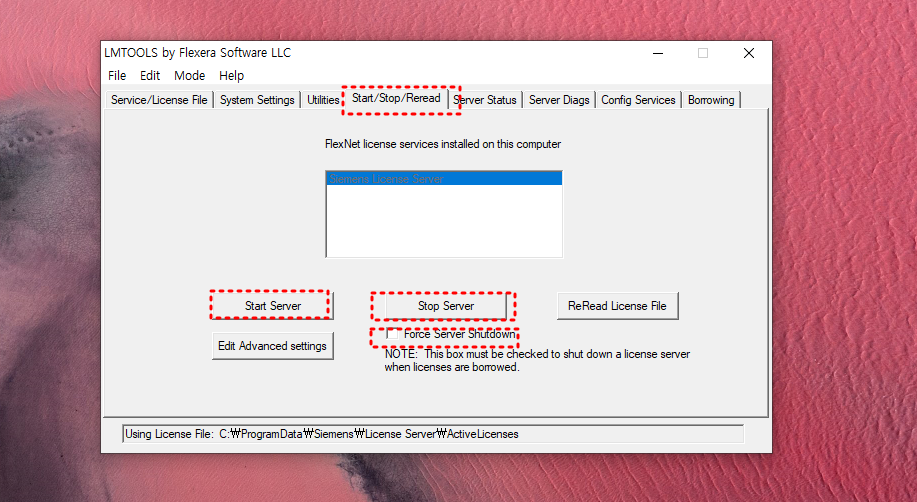 - 만약 Reread Server License File Completed가 표시되지 않거나 NX 실행이 되지 않는 경우: