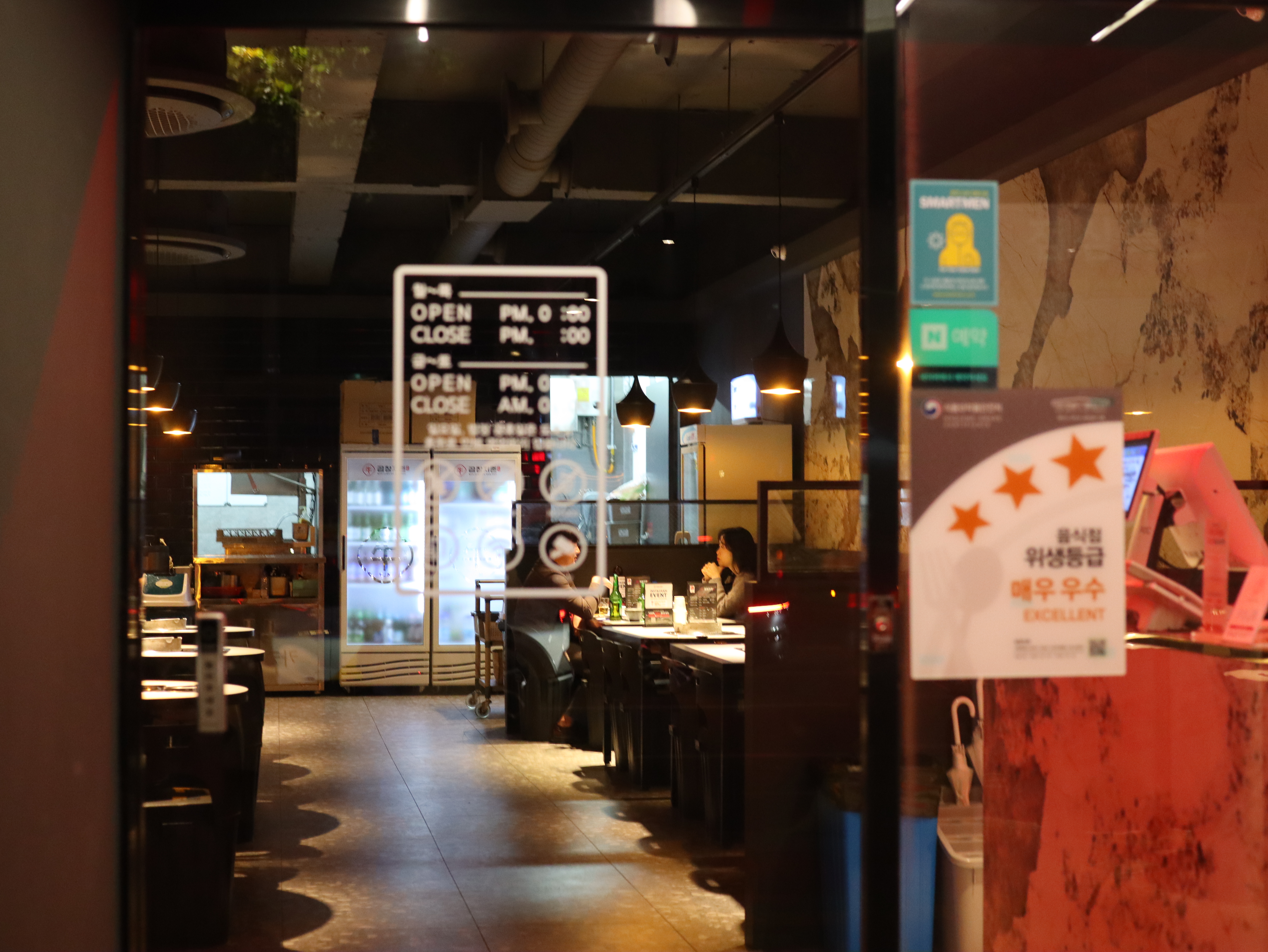 그런데 곱창지존은 그런 선입견을 완전히 깨줬습니다. 와이프도 “여기가 곱창집이라고?” 하며 감탄했을 정도로 분위기가 힙하고 깔끔했어요. 특히 테이블마다 조명이 잘 배치되어 있어서 대화를 나누기에도 참 좋더라고요.
