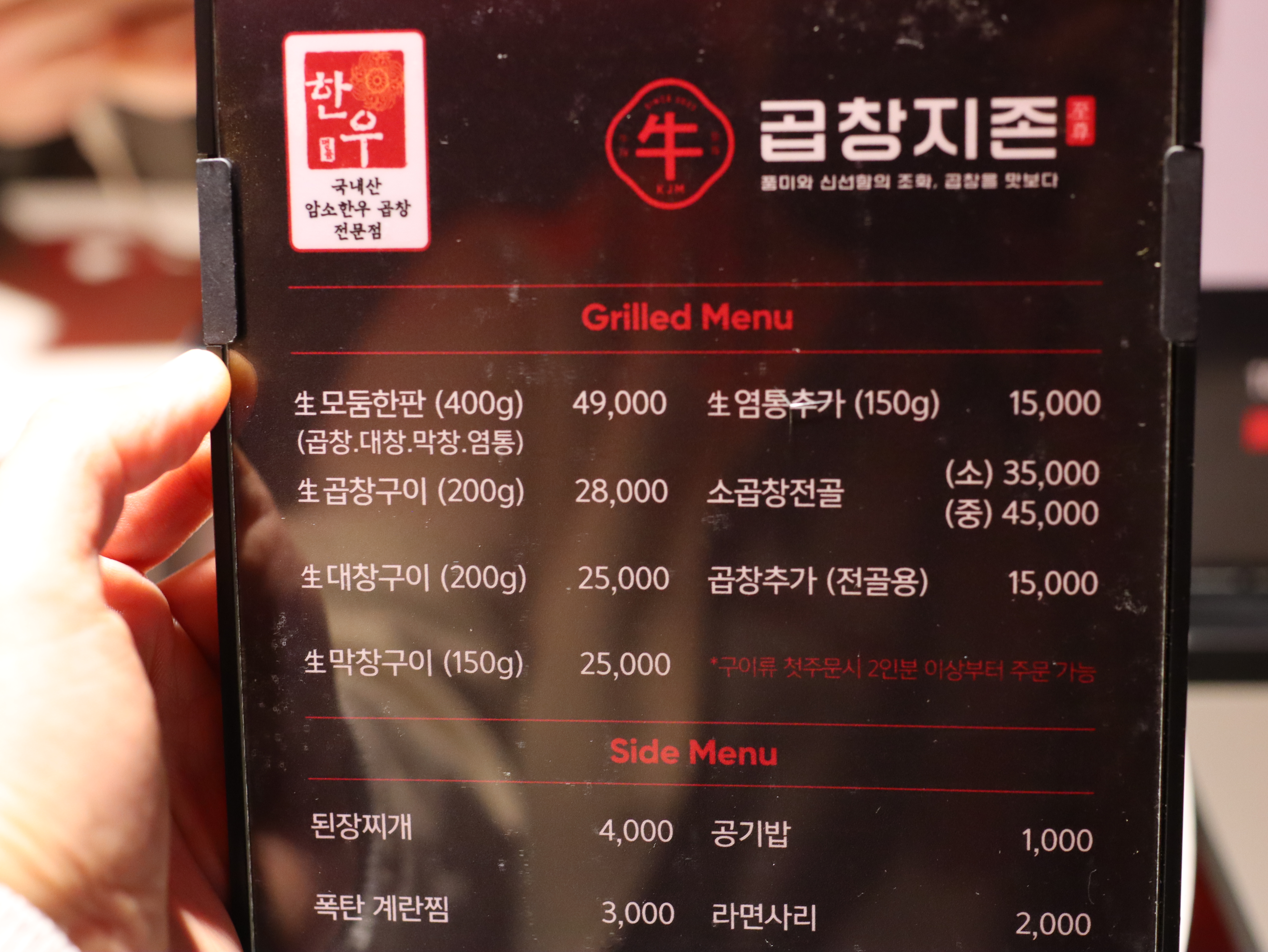 곱창지존은 맛뿐만 아니라 가격도 합리적이어서 정말 만족스러웠습니다. 모둠곱창이 49,000원이라는 점도 부담 없었고, 사이드 메뉴들도 저렴한 가격대라 추가로 주문하는 데 망설임이 없었어요. 여기에 넓고 깔끔한 매장, 친절한 서비스, 그리고 직원을 통한 그릴링 서비스까지 더해져 최고의 데이트 장소였다고 자부합니다.