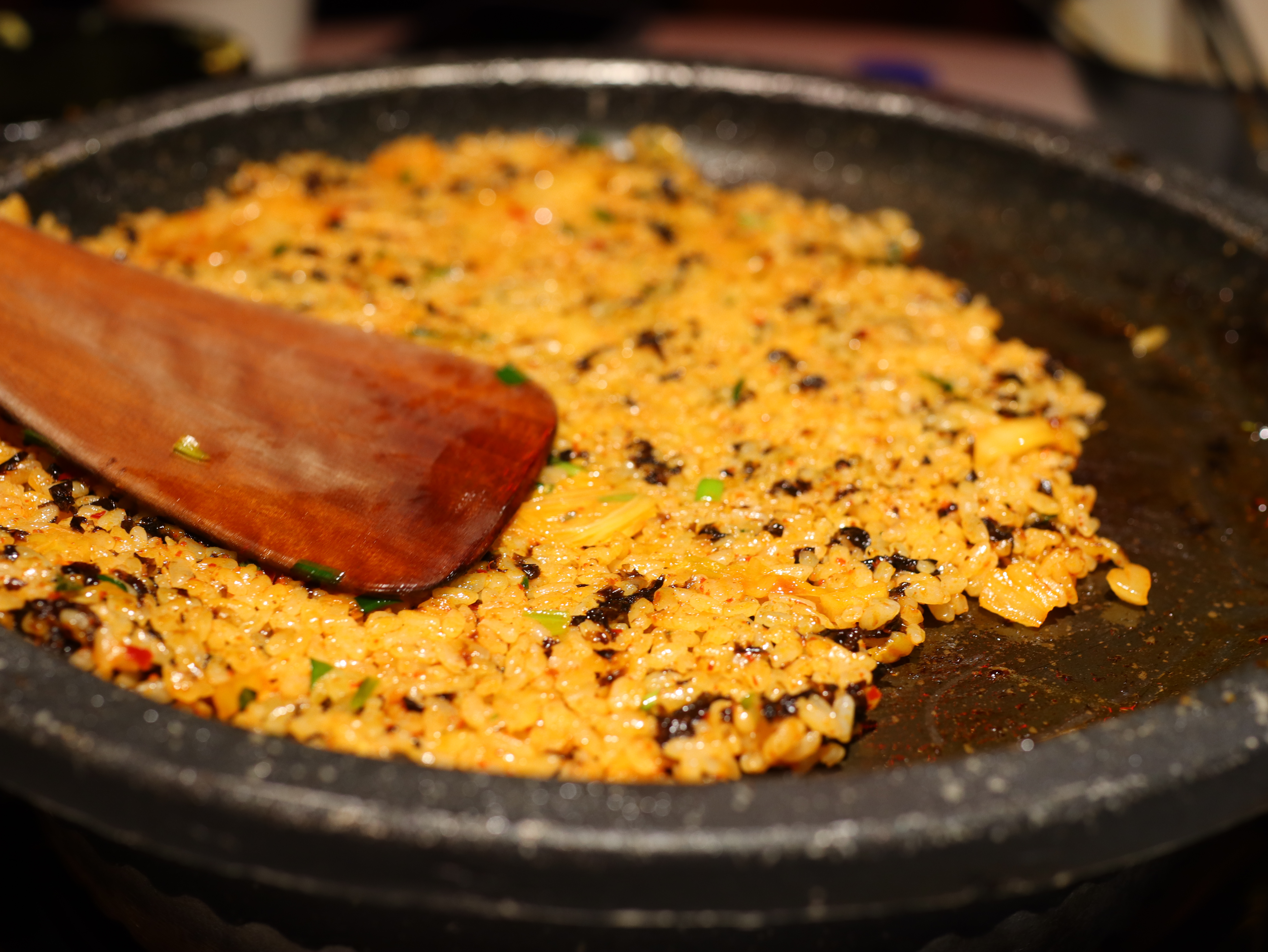 마지막으로 볶음밥으로 식사를 마무리했어요. 곱창기름이 남은 불판 위에서 볶아주는데, 밥이 눌어붙을 정도로 바삭하게 익혀져 씹을 때마다 고소함이 폭발했습니다.