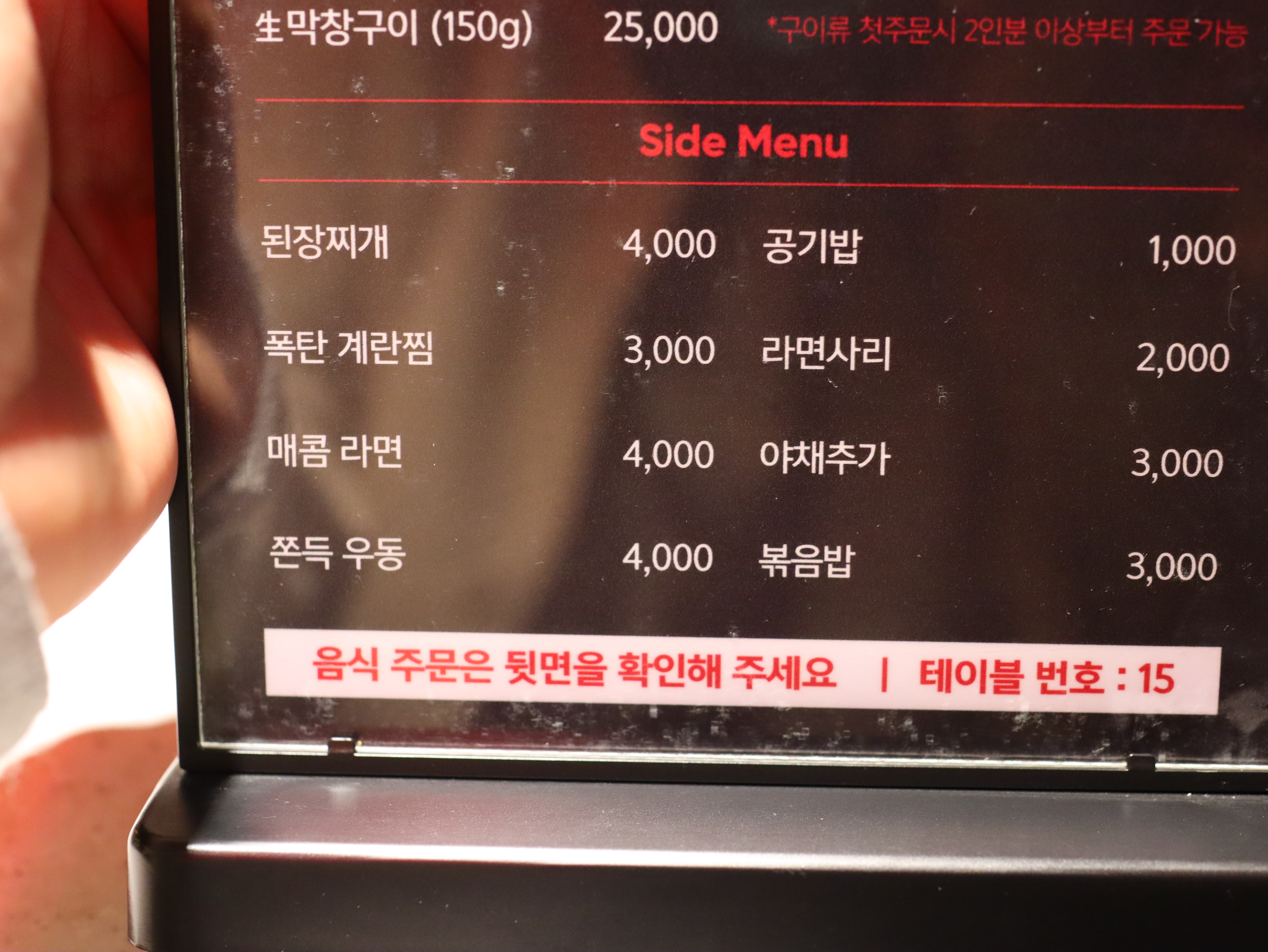사이드 메뉴로 주문한 폭탄계란찜은 폭신폭신하고 촉촉한 식감이었는데, 곱창과 함께 먹으니 정말 잘 어울렸어요. 계란찜 특유의 부드러움이 곱창의 고소함을 더욱 돋보이게 해줘서, 식사 내내 손이 가는 메뉴였답니다.