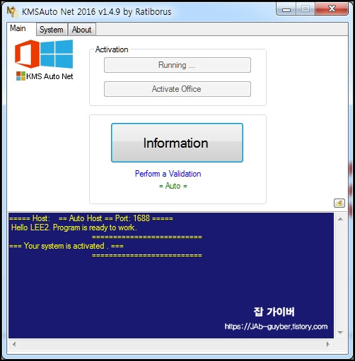 우선 KMSAutoNet 프로그램을 다운로드 후 실행합니다.