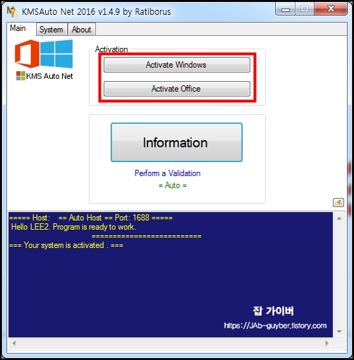 KMSAutoNet 프로그램을 다운로드 후 실행합니다.