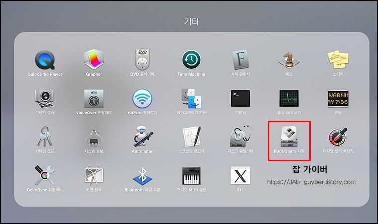 런쳐패드는 윈도우의 제어판과 유사한 기능을 제공하며, 부트캠프를 설치하기 위한 시작점입니다.