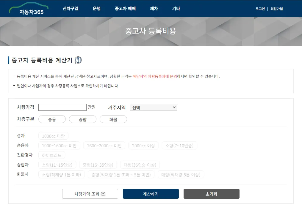 자동차 명의이전 비용 계산기