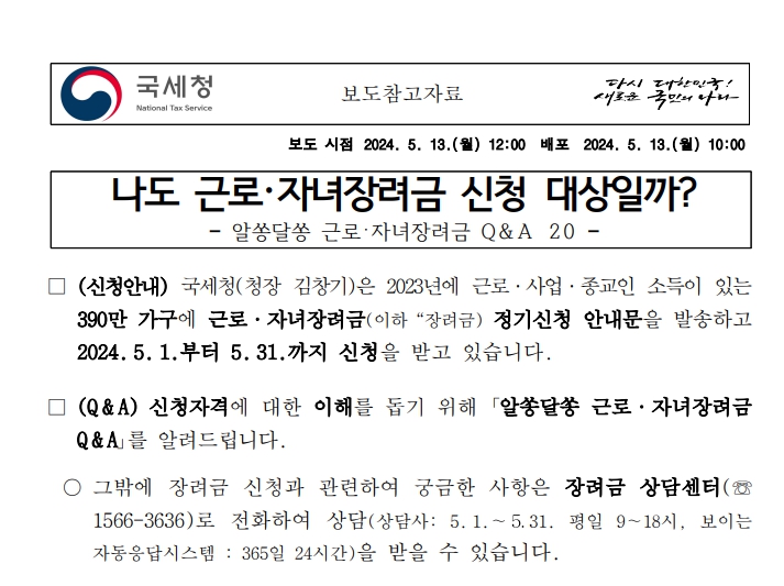 이상 근로장려금이 여러분의 가정 경제에 안정과 활력을 더해줄 수 있기를 응원합니다!