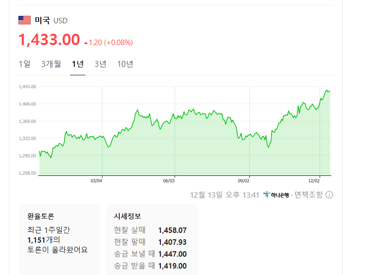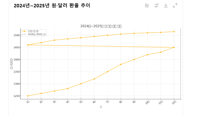 2025년 들어 원·달러 환율은 대체로 1,400원대 초중반에서 움직이다가, 4월에 1,487원으로 연중 최고치를 기록했습니다. 이후에도 1,450~1,470원 구간에서 등락을 반복하며, 시장에서는 “조금만 더 충격이 오면 1,500원도 금방”이라는 말이 나올 정도로 심리적인 압박이 커진 상태입니다.