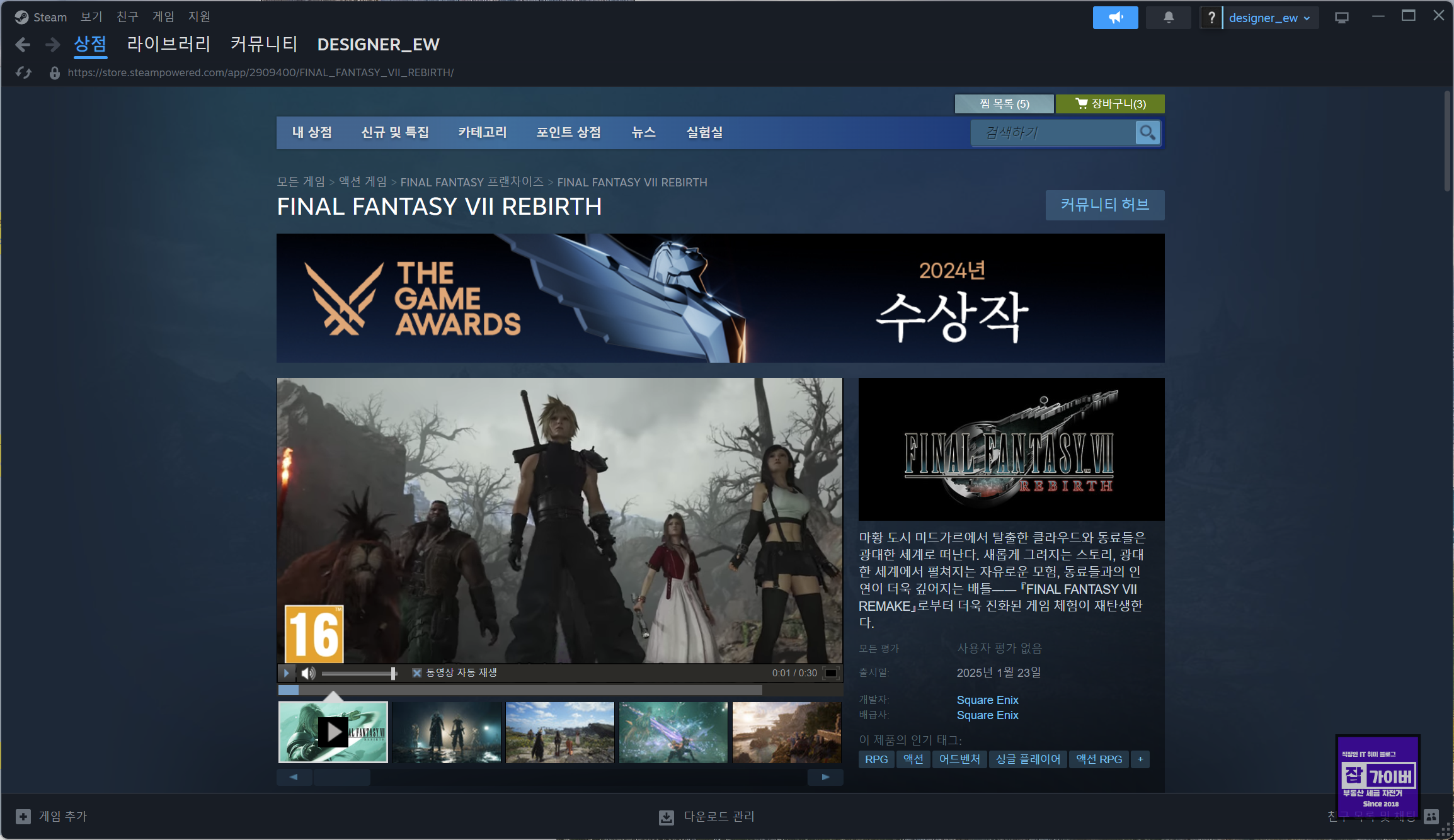 PS5 독점이 끝나고 PC로 돌아온 파이널 판타지 7 리버스! 오랜 기다림의 끝에 더 큰 재미를 기대해봅니다!!ㅎㅎ