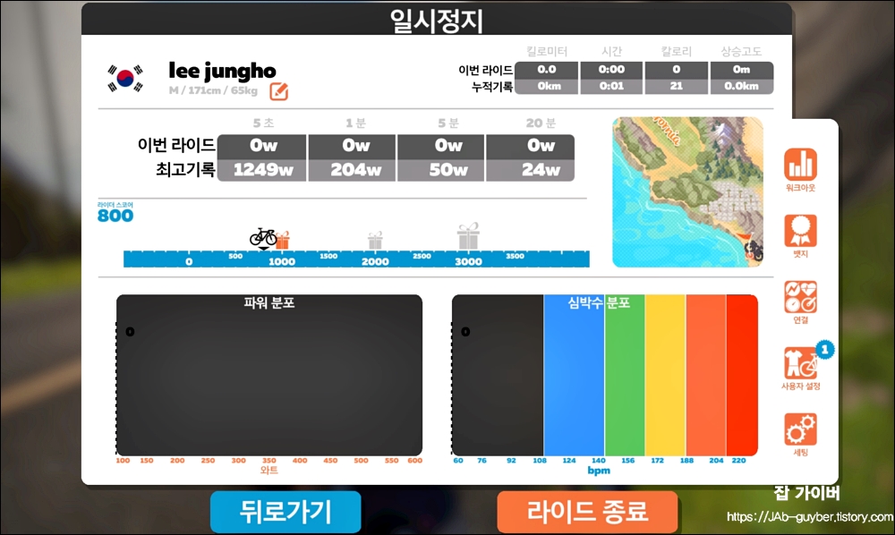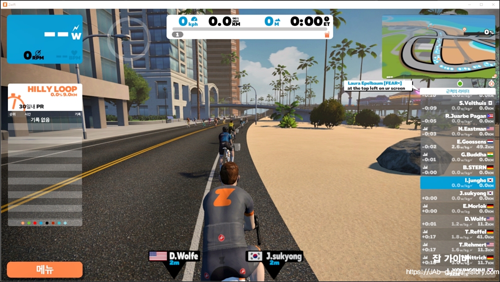 이후 원하는 방향으로 라이딩을 하는 것으로 즈위프트를 즐길 수 있습니다.