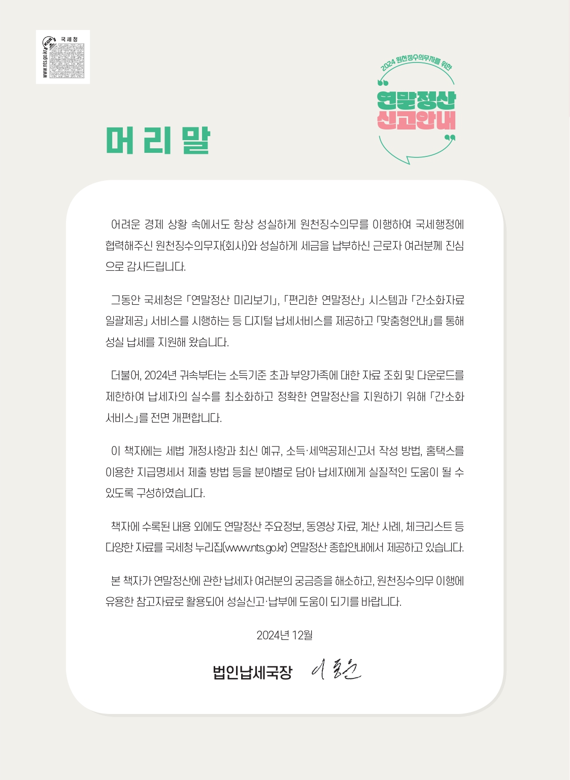 - 의료비, 교육비, 신용카드 사용액 등 주요 공제 자료를 확인하고 누락된 항목은 따로 준비합니다.