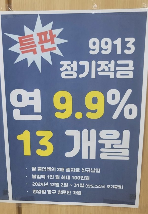 새마을금고 9.9% 특판적금 예금자 보호 대상 아니기 때문에 주의