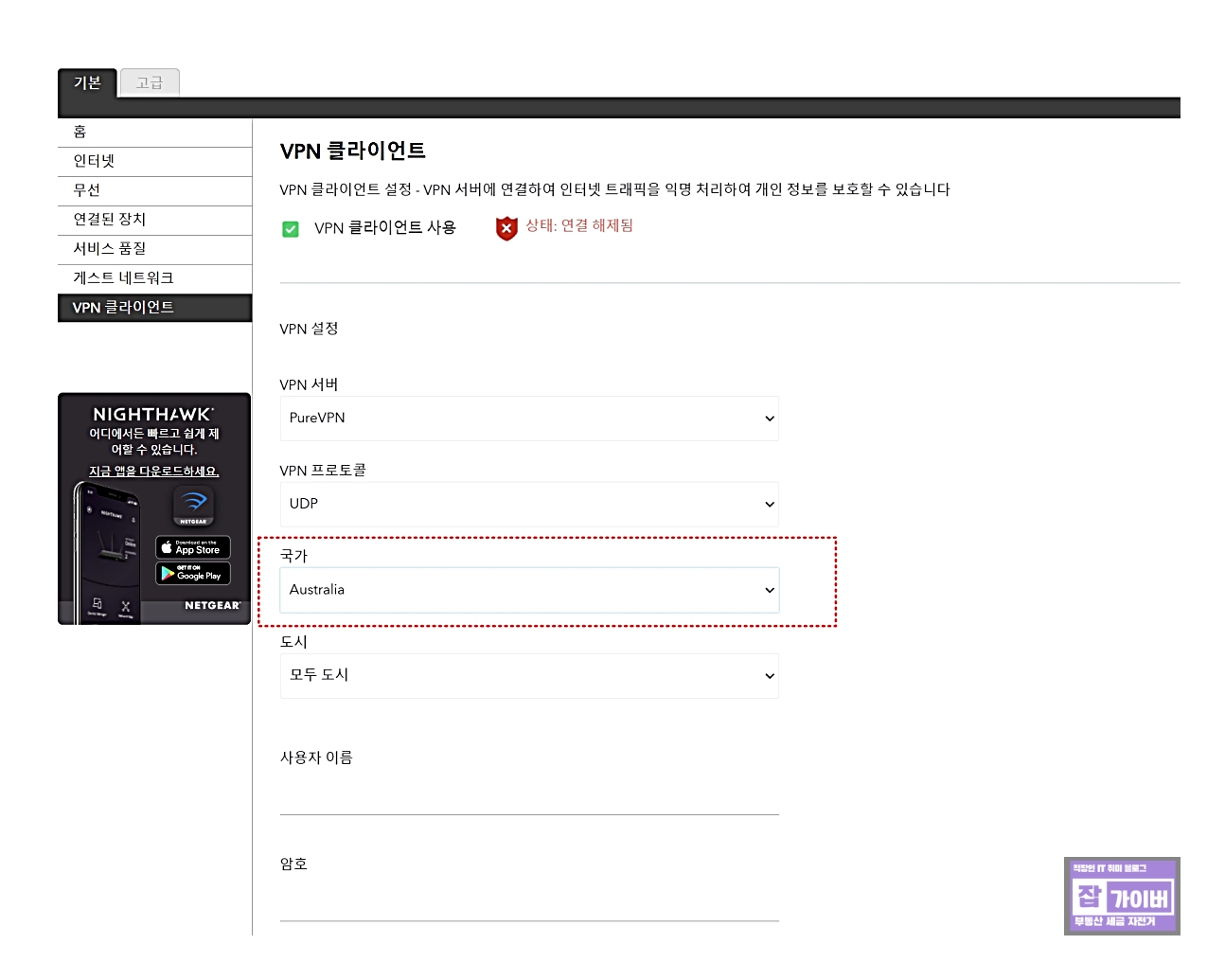 A8: 넷기어 RAX10 공유기에서 VPN을 설정하려면, 관리자 페이지에 로그인한 후 아래 참고하세요