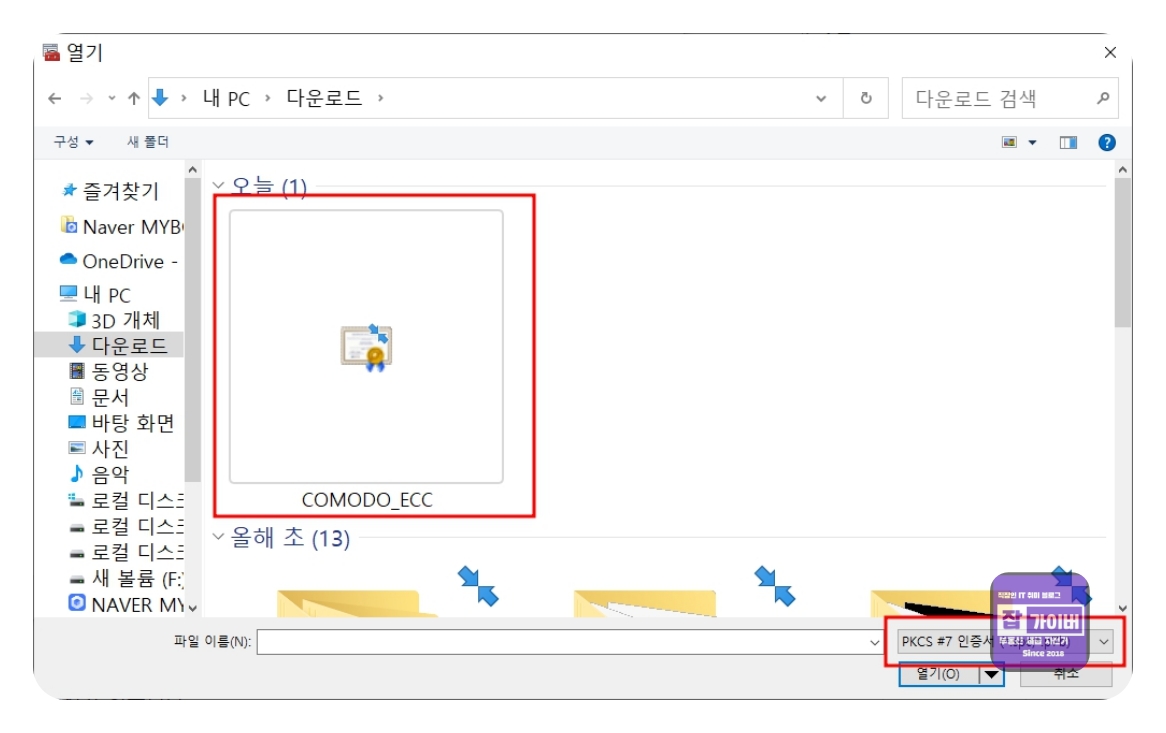 인증서 가져오기를 통해 앞서 다운로드 받은 코모도 인증서를 불러오면 됩니다.