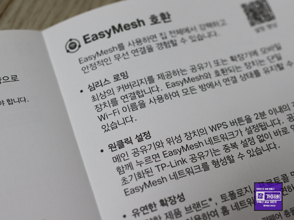 뿐만 아니라 EasyMesh 기술을 지원해 다른 호환되는 공유기와 함께 사용하면 집안 전체의 네트워크 범위를 확장할 수 있습니다.