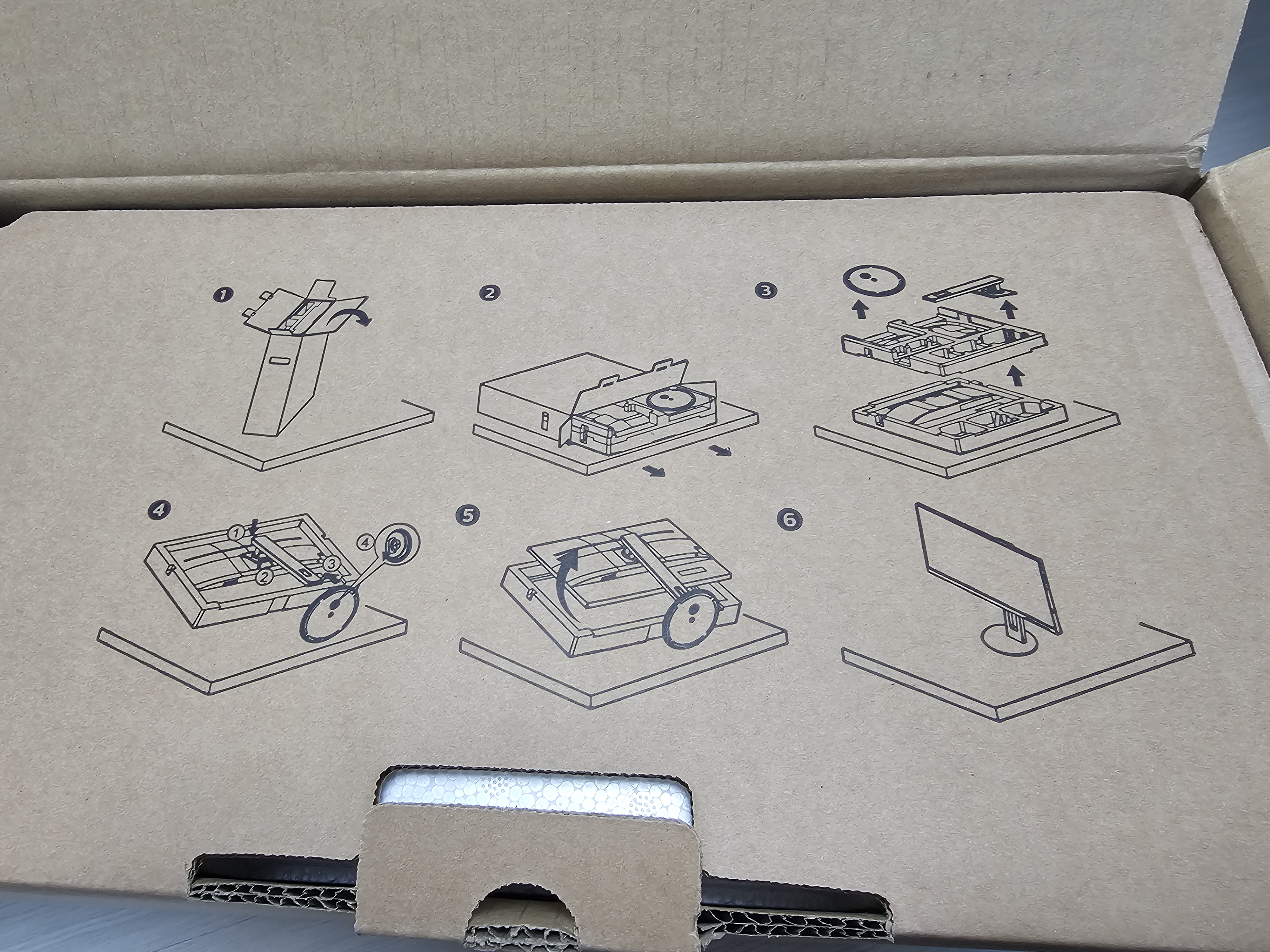 모니터 박스를 열자 마자 기본 스탠드와 함께 HDMI 케이블, USB C 케이블, 전원 케이블 등이 포함되어 있었습니다.