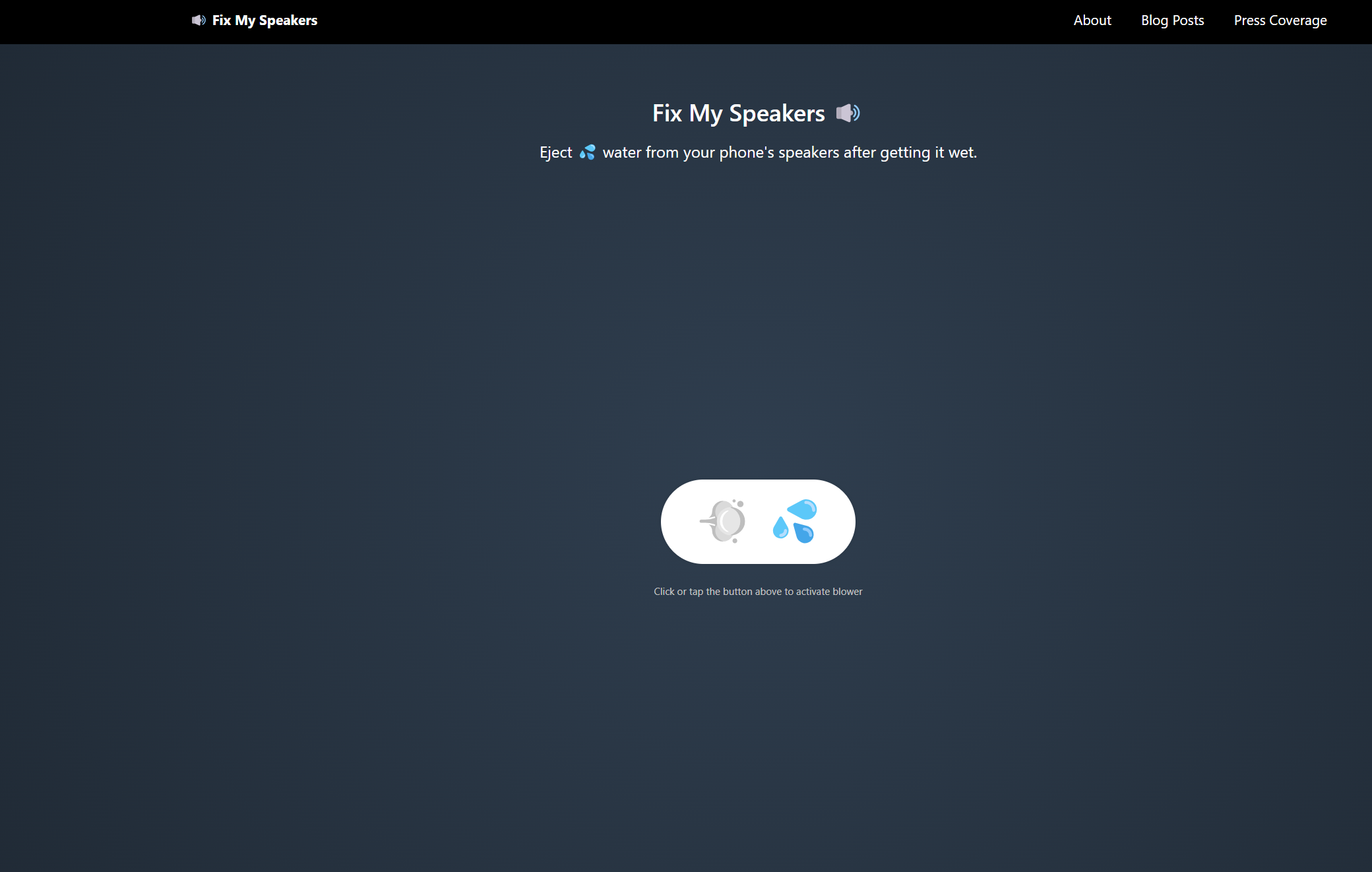 우선 이 웹사이트는 스피커에서 물을 제거하는 데 도움이 되는 특정 주파수의 소리를 재생합니다. 사이트는 매우 간단하게 설계되어 있으며, 화면에 표시된 하얀 버튼을 클릭하기만 하면 됩니다. 버튼을 누르면 스피커에서 낮은 주파수의 소리가 나오면서 스피커 내부의 물이 밀려 나오게 됩니다.